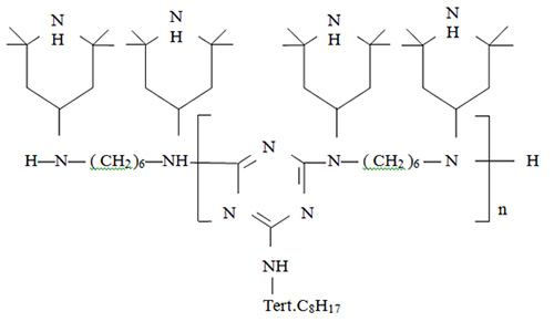 Chemical Name: 1,3,5-Triazine-2,4,6-triamine,N,N’’’-[1,2-ethane-diyl-bis[[[4,6-bis-[butyl(1,2,2,6,6-pentamethyl-4-piperidinyl)