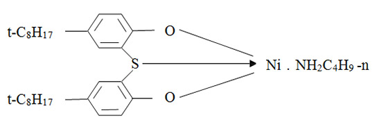 Content: [2,2’-Thiobis(4-tert-octylphenolato)]-n-butylamine Nickel II Empirical Formula: C32H51O2NniS CAS Number: 14516-71-3 Structure: