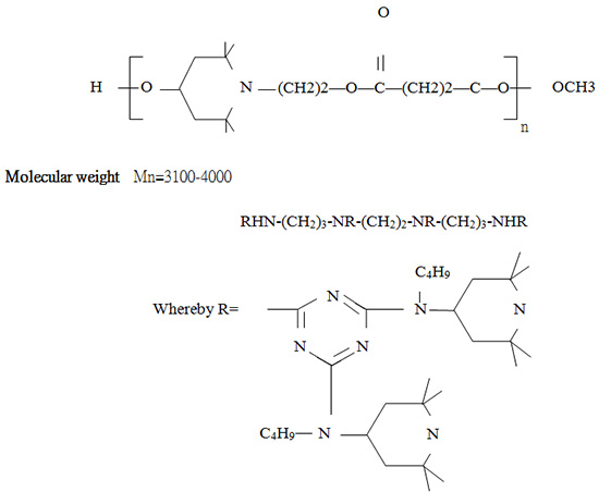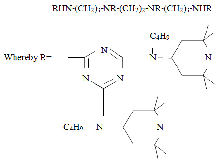 Chemical Name: 1,3,5-Triazine-2,4,6-triamine,N,N’’’-[1,2-ethane-diyl-bis[[[4,6-bis-[butyl(1,2,2,6,6-pentamethyl-4-piperidinyl)
